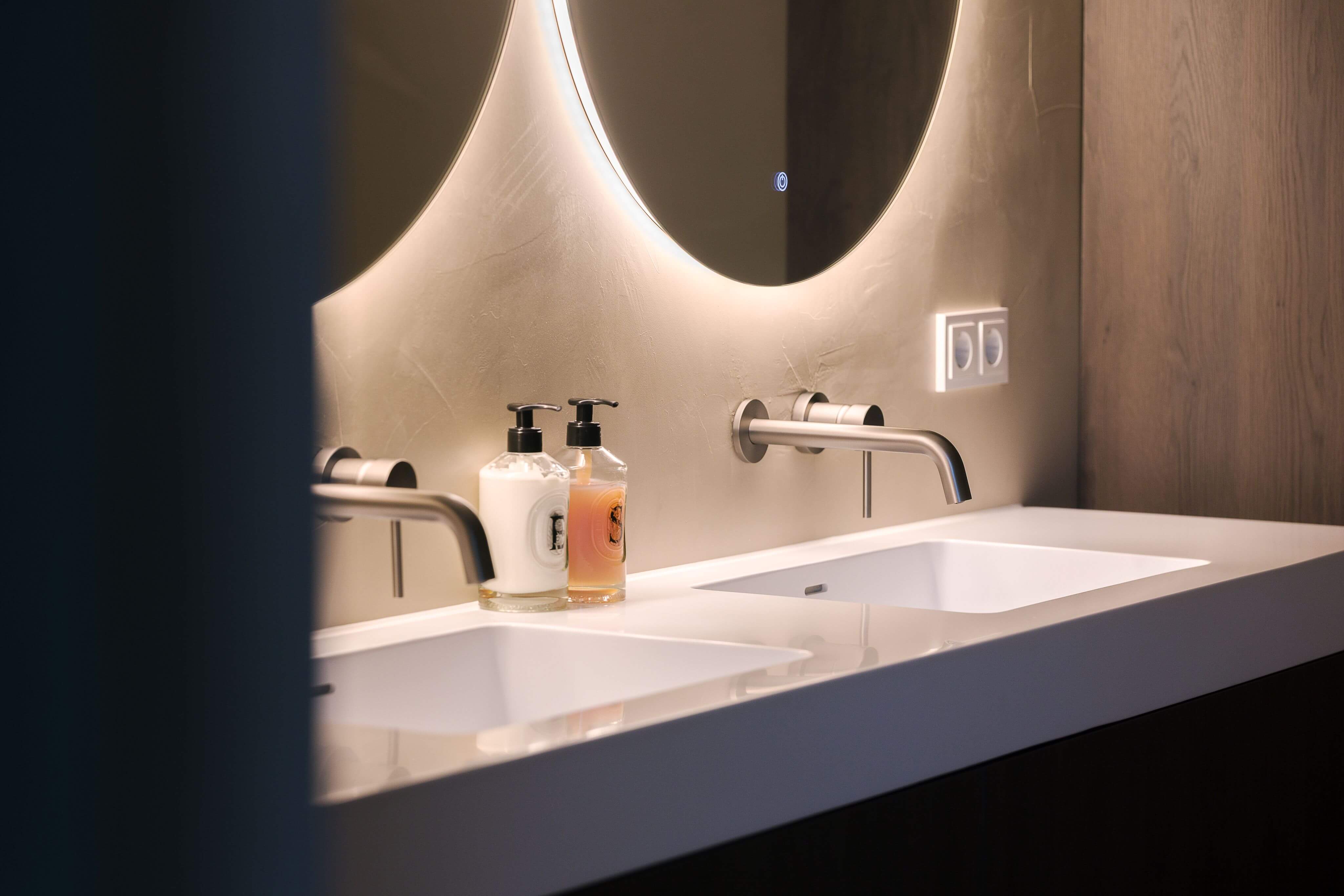 Voor deze nieuwbouwwoning in Nuenen realiseerden wij twee badkamers volledig in Beton Ciré, in de warme tint 4005-Y20R. In totaal werd 77 m² aan wanden naadloos afgewerkt. Volledig waterdicht, dus ook vakkundig toegepast in het douchegedeelte.